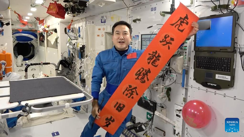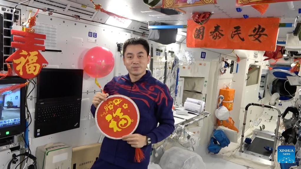 Onboard China's space station core module, about 400 km above the Earth, taikonauts Zhai Zhigang, Wang Yaping and Ye Guangfu extended their Spring Festival greetings in a video released by China Manned Space Agency on New Year's eve.