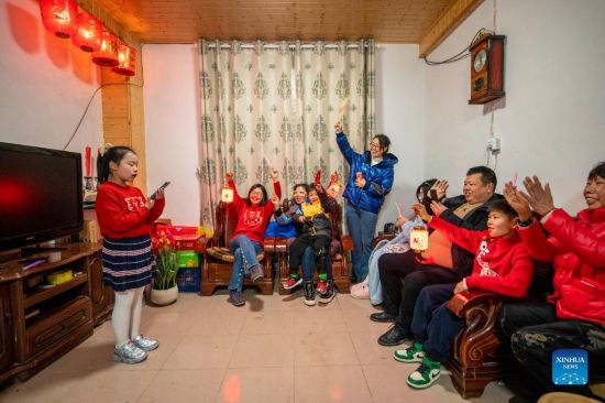 Villagers stage performances to amuse themselves at a village in Huajie Town, Yongkang, east China's Zhejiang Province on Feb. 1, 2022. Various activities are held during the Spring Festival holidays. (Photo by Hu Xiaofei/Xinhua)