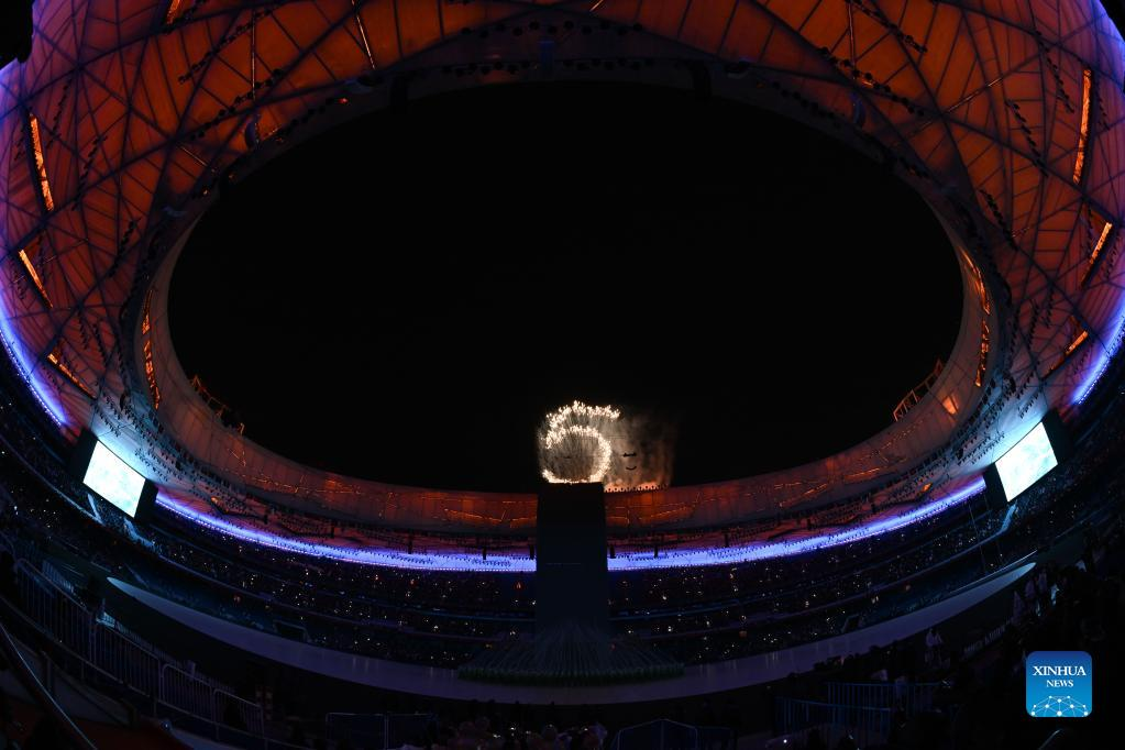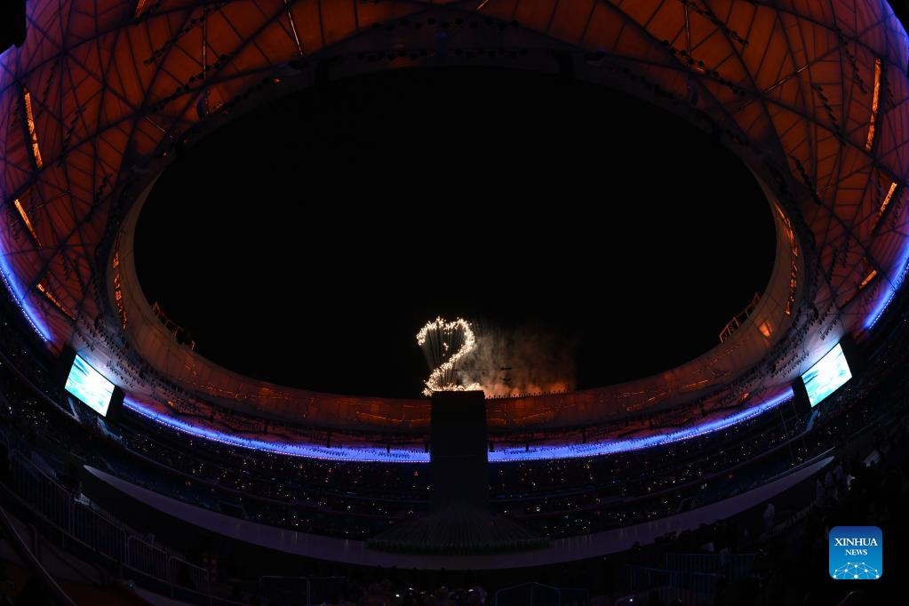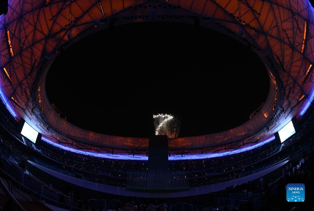 Fireworks explode during the opening ceremony of the Beijing 2022 Olympic Winter Games at the National Stadium in Beijing, capital of China, Feb. 4, 2022. (Xinhua/Pang Xinglei)
