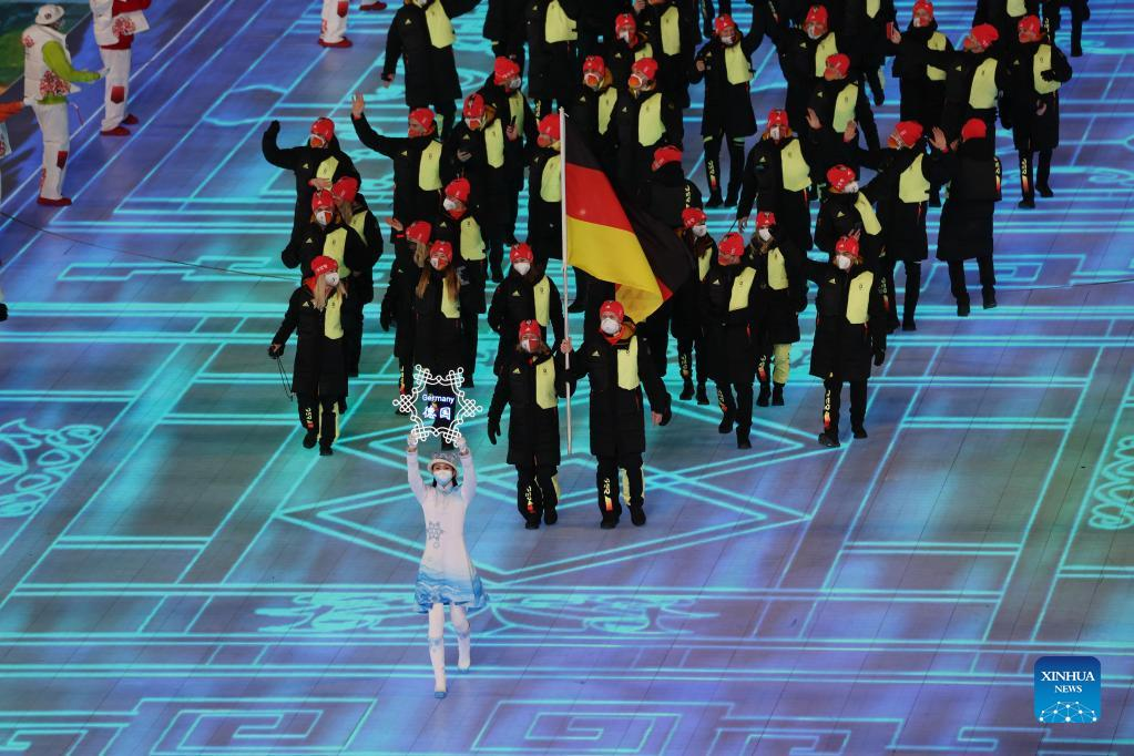The Olympic delegation of Germany parade into the National Stadium during the opening ceremony of the Beijing 2022 Olympic Winter Games in Beijing, capital of China, Feb. 4, 2022. (Xinhua/Xu Zijian)