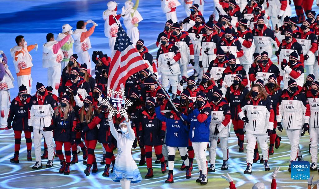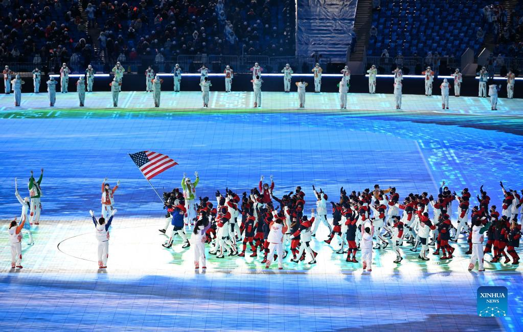 The Olympic delegation of the United States parade into the National Stadium during the opening ceremony of the Beijing 2022 Olympic Winter Games in Beijing, capital of China, Feb. 4, 2022. (Xinhua/Huang Zongzhi)