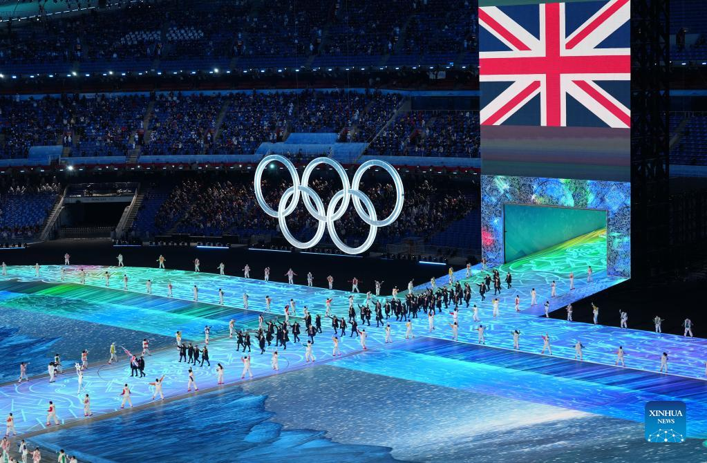 The Olympic delegation of Great Britain parade into the National Stadium during the opening ceremony of the Beijing 2022 Olympic Winter Games in Beijing, capital of China, Feb. 4, 2022. (Xinhua/Huang Zongzhi)