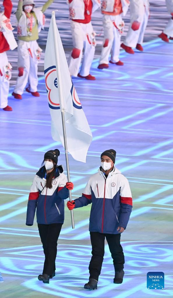 The Olympic delegation of Chinese Taipei parade into the National Stadium during the opening ceremony of the Beijing 2022 Olympic Winter Games in Beijing, capital of China, Feb. 4, 2022. (Xinhua/Xiong Qi)