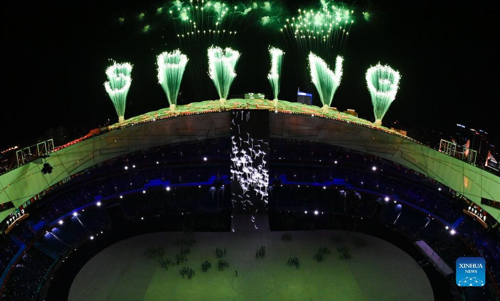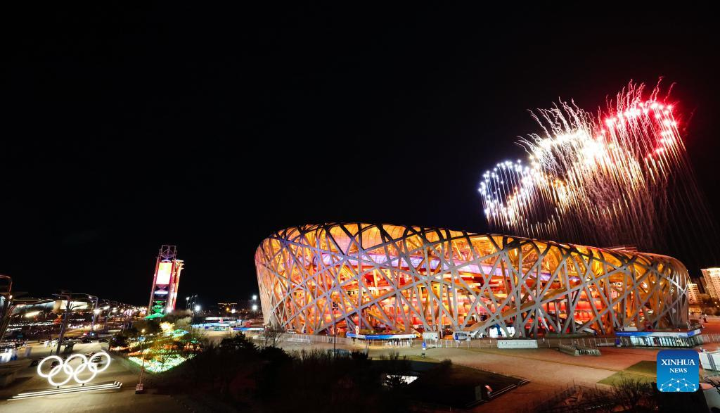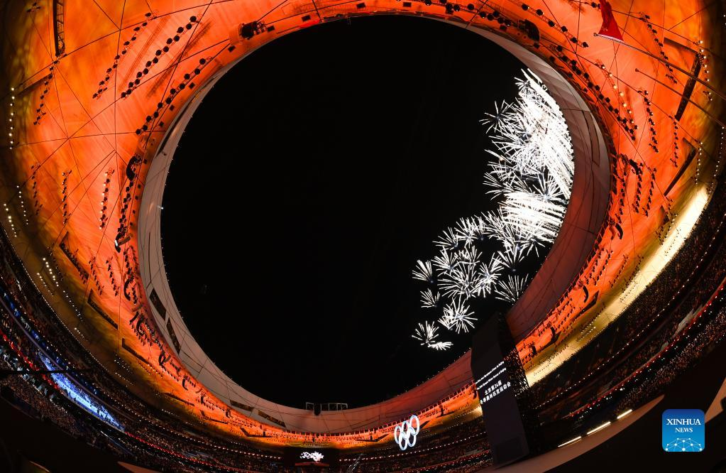 Fireworks illuminate the night sky during the opening ceremony of the Beijing 2022 Olympic Winter Games at the National Stadium in Beijing, capital of China, Feb. 4, 2022. (Xinhua/Ju Huanzong)