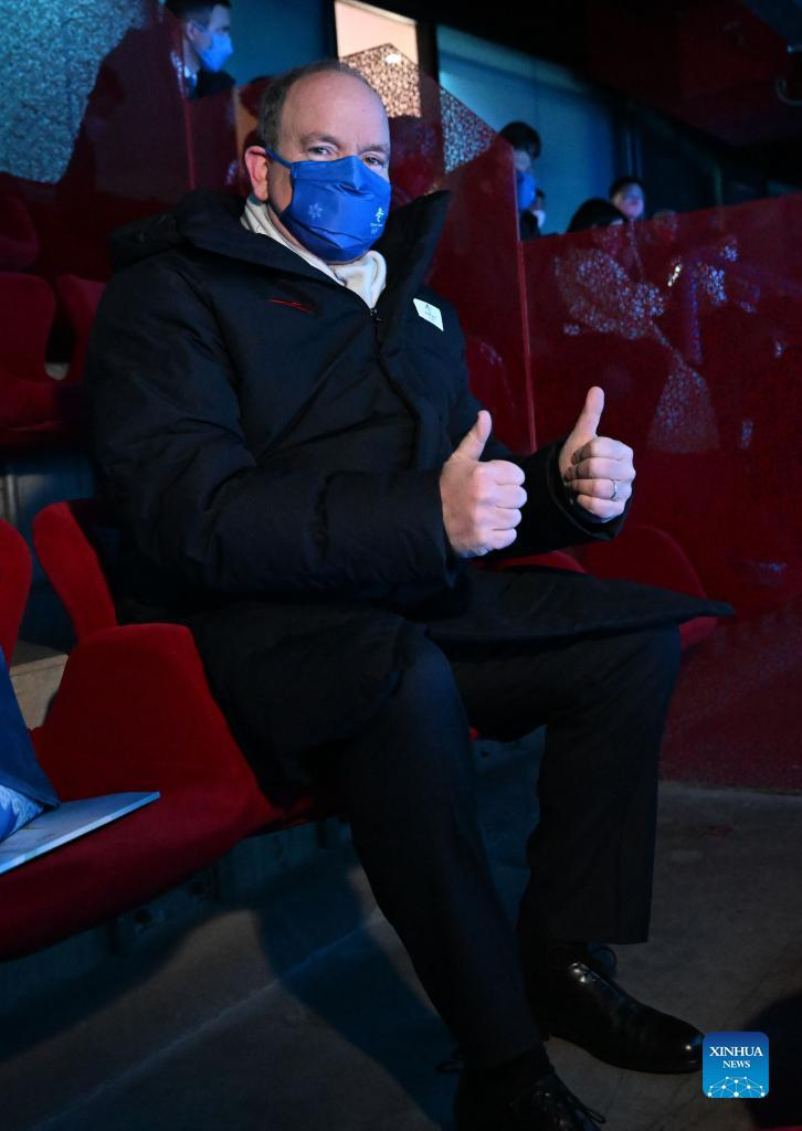 Prince Albert II of Monaco gives the thumbs-up sign during the opening ceremony of the 24th Olympic Winter Games at the National Stadium in Beijing, capital of China, Feb. 4, 2022. (Xinhua/Ma Ning)