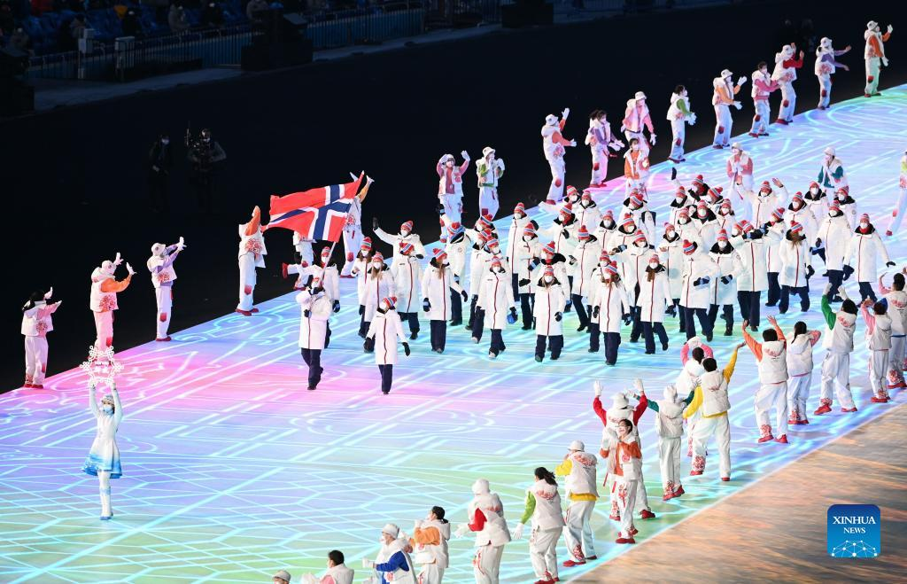 The Olympic delegation of Norway parade into the National Stadium during the opening ceremony of the Beijing 2022 Olympic Winter Games in Beijing, capital of China, Feb. 4, 2022. (Xinhua/Huang Zongzhi)