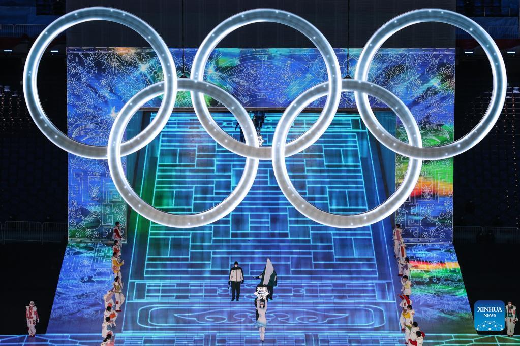 The Olympic delegation of Pakistan parade into the National Stadium during the opening ceremony of the Beijing 2022 Olympic Winter Games in Beijing, capital of China, Feb. 4, 2022. (Xinhua/Yang Lei)