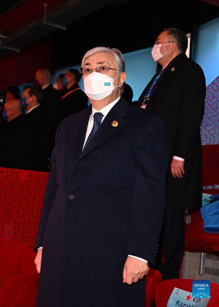 Kazakh President Kassym-Jomart Tokayev looks on during the opening ceremony of the 24th Olympic Winter Games at the National Stadium in Beijing, capital of China, Feb. 4, 2022. (Xinhua/Ma Ning)