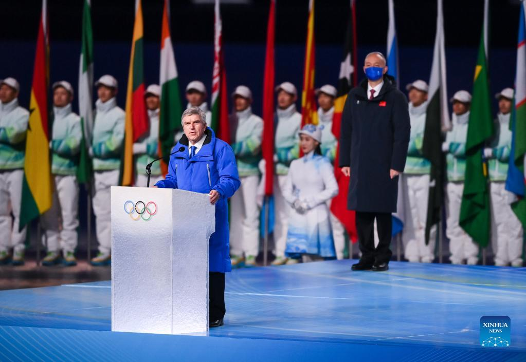 President of the International Olympic Committee (IOC) Thomas Bach addresses the opening ceremony of the Beijing 2022 Olympic Winter Games at the National Stadium in Beijing, capital of China, Feb. 4, 2022. (Xinhua/Xue Yuge)