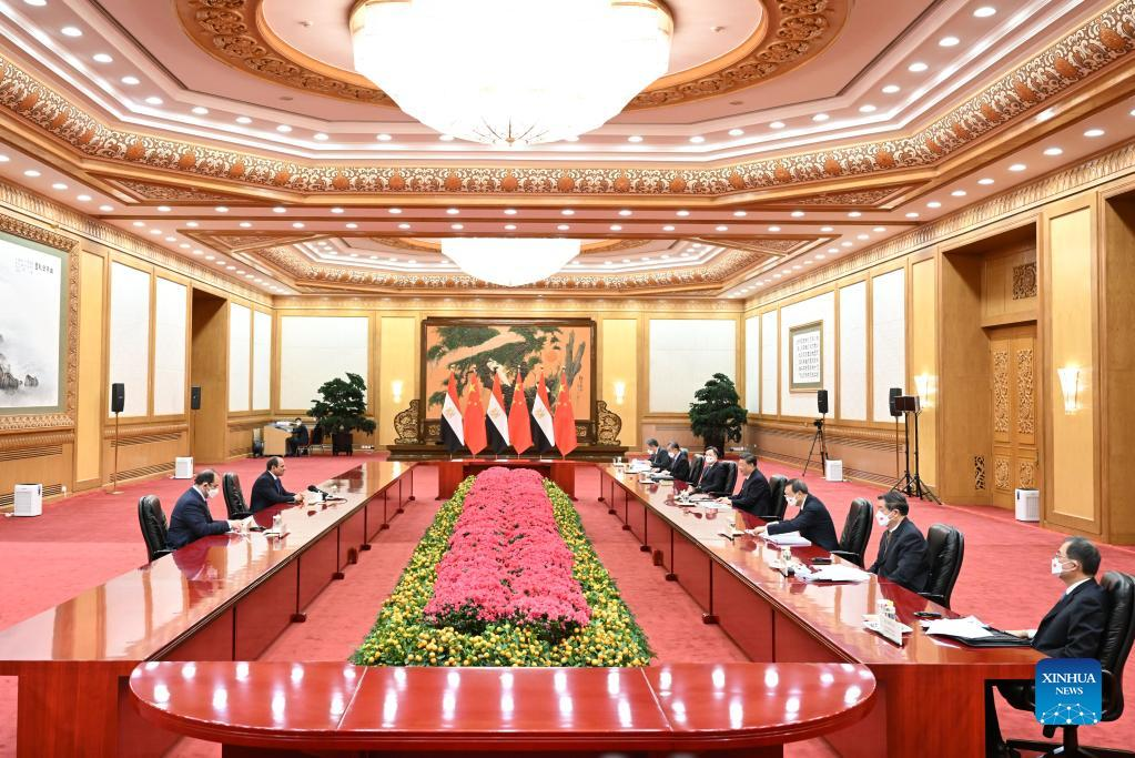 Xi said that China and Egypt should also join hands to take the lead in China-Arab and China-Africa cooperation, accelerate the building of the China-Arab community with a shared future for the new era, and promote African development and prosperity.