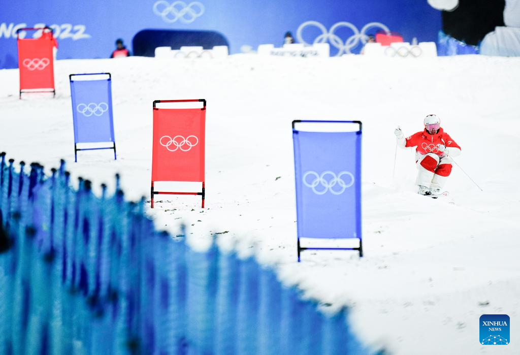 Mikael Kingsbury of Canada competes in Free Style Skiing Men's Moguls Final at Genting Snow Park in Zhangjiakou, north China's Hebei Province, Feb. 5, 2022. (Xinhua/Xu Chang)