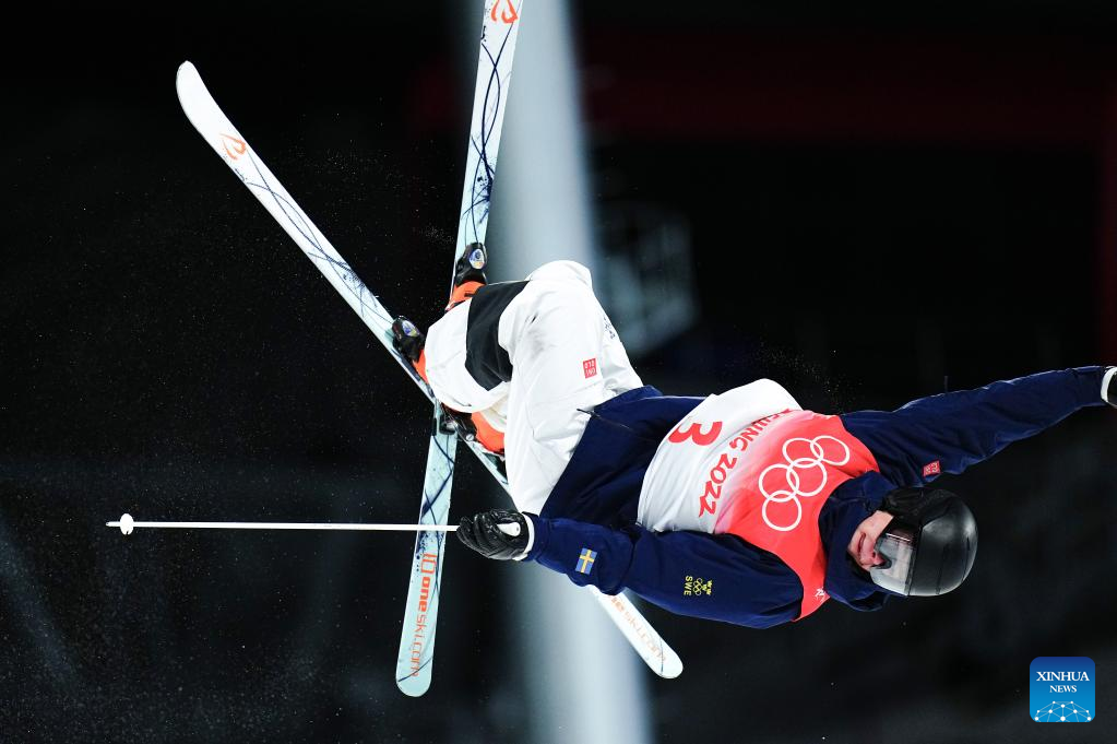 Walter Wallberg of Sweden competes in Free Style Skiing Men's Moguls Final at Genting Snow Park in Zhangjiakou, north China's Hebei Province, Feb. 5, 2022. (Xinhua/Xu Chang)