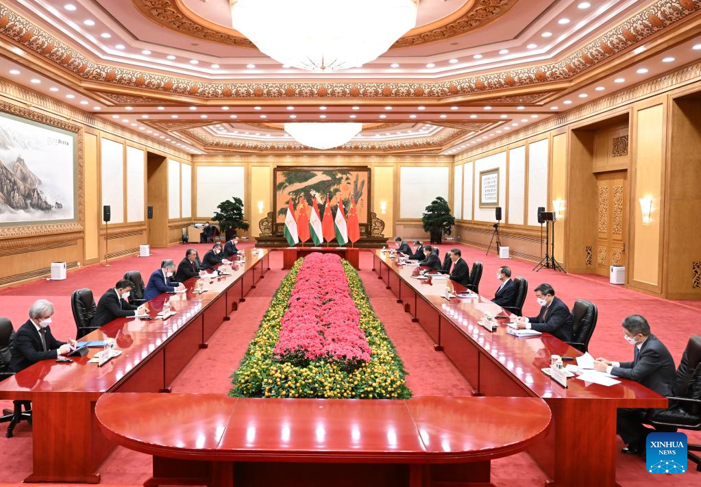 BEIJING, Feb. 5 (Xinhua) -- Chinese President Xi Jinping on Saturday met with Tajik President Emomali Rahmon, who came to China for the opening ceremony of the Beijing 2022 Olympic Winter Games.