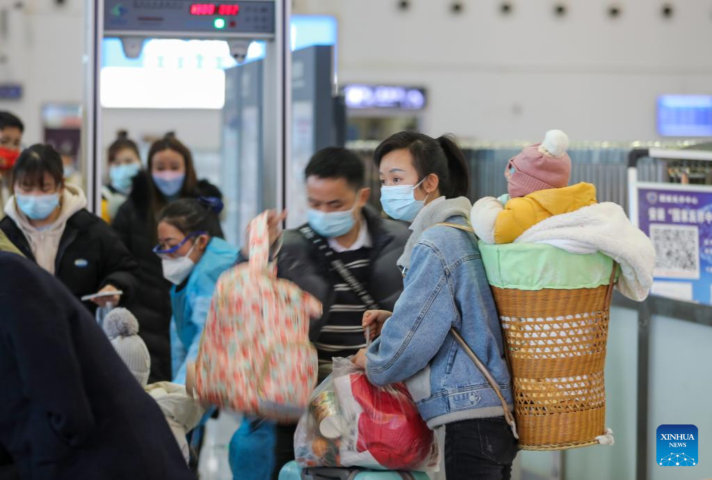Passengers enter Tongren South Railway Station in Tongren City, southwest China's Guizhou Province, Feb. 6, 2022.