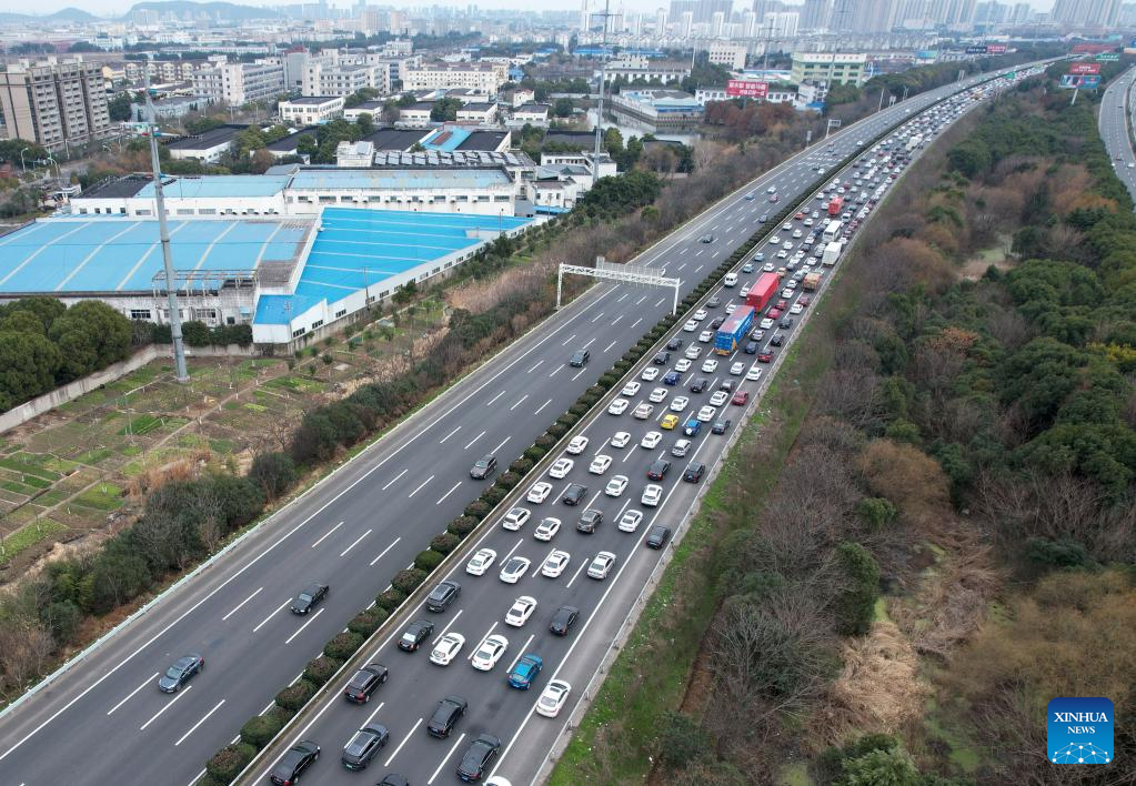 In this aerial photo, vehicles heading to Shanghai run on an expressway in Wuxi City, east China's Jiangsu Province, Feb. 6, 2022.