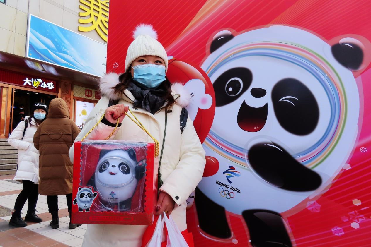 A citizen in Beijing displays her newly bought licensed products of the Beijing 2022 Winter Olympics, Feb. 6, 2022. (People’s Daily Online/He Luqi)