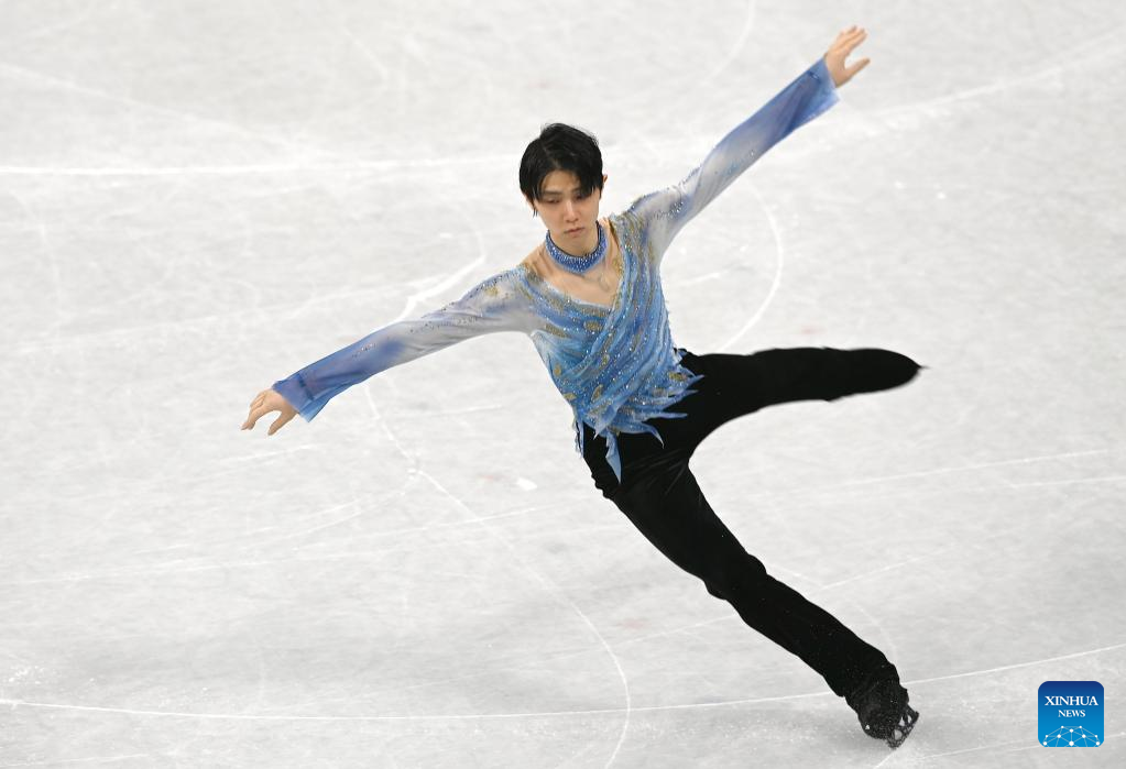 Hanyu Yuzuru of Japan performs during the figure skating men single skating short program at Capital Indoor Stadium in Beijing, capital of China, Feb. 8, 2022. (Xinhua/Liu Xiao)