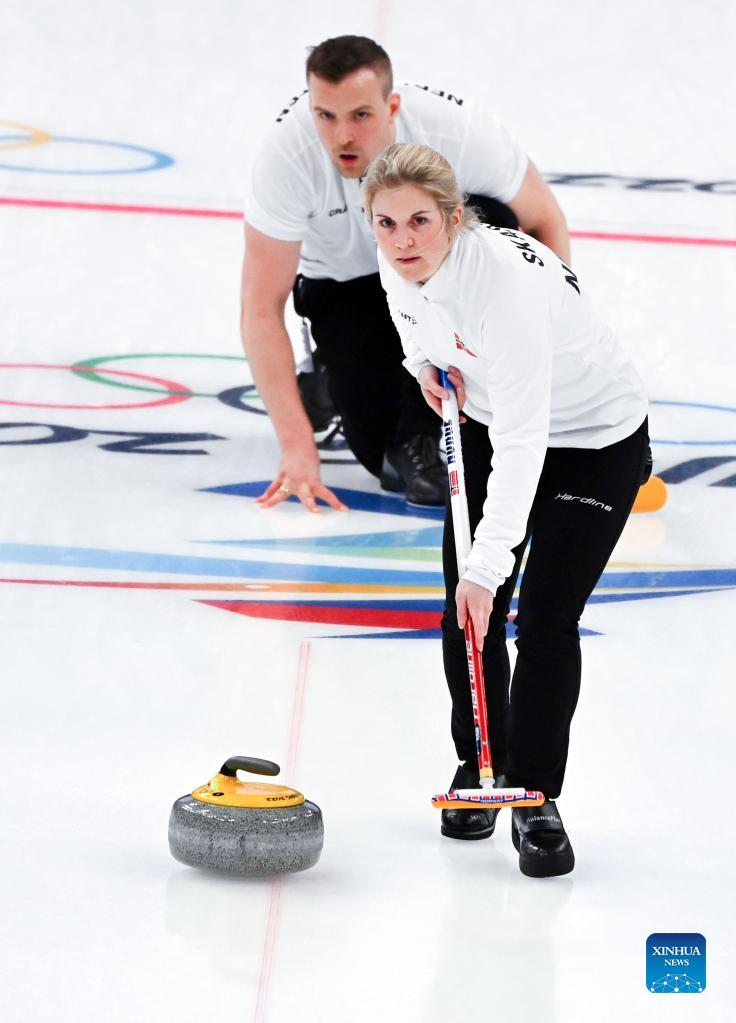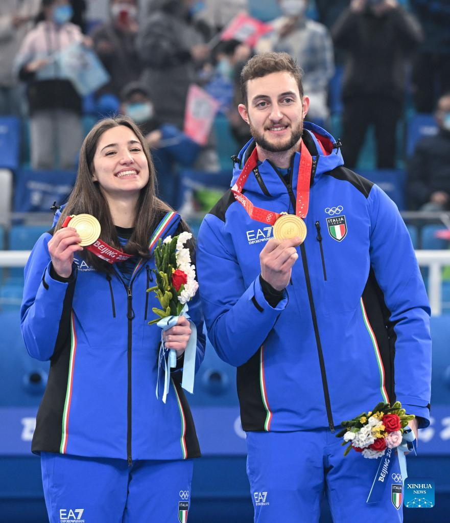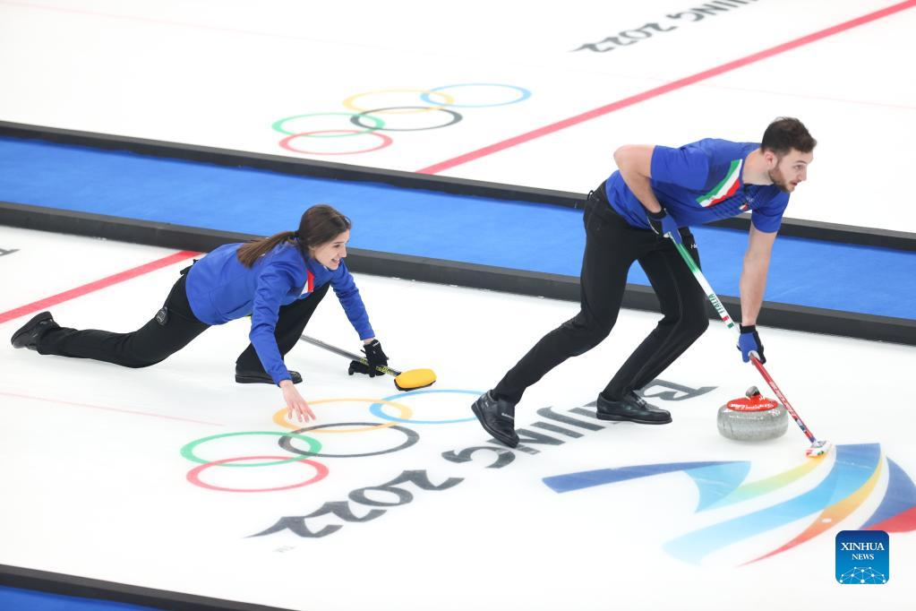 BEIJING, Feb. 8 (Xinhua) -- Undefeated Italy beat PyeongChang 2018 bronze medalist Norway 8-5 to win the mixed doubles curling title at Beijing 2022 on Tuesday evening, notching the first ever Olympic curling medal for their country.