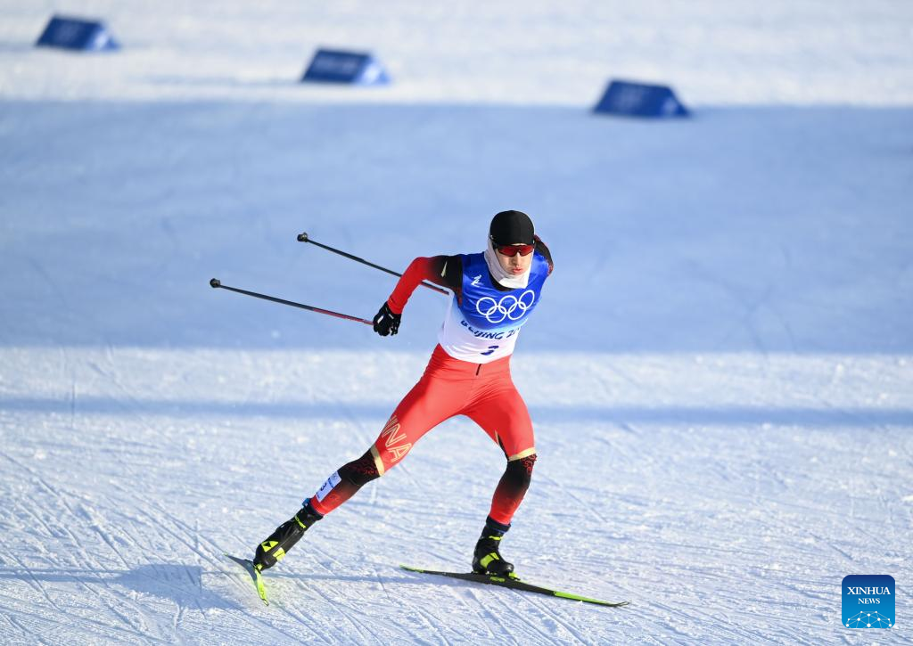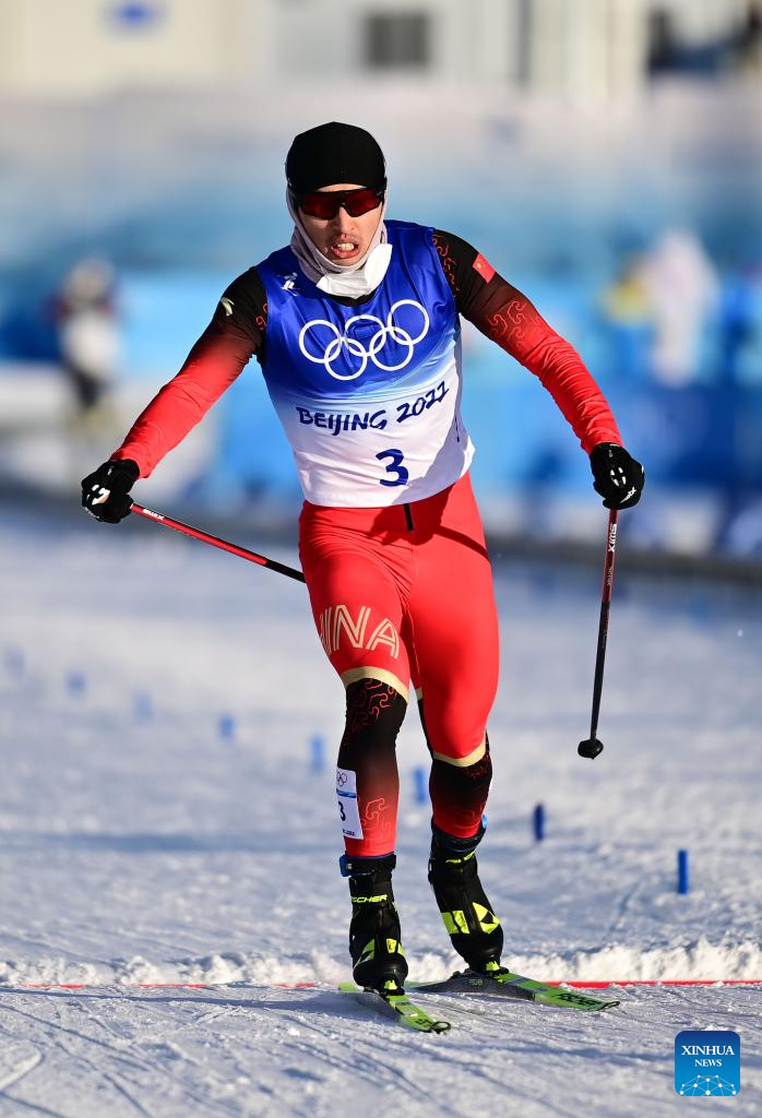 Wang Qiang of China competes during the cross-country skiing men's sprint free qualification match of Beijing 2022 Winter Olympics at Zhangjiakou National Cross-country Skiing Centre in Zhangjiakou, north China's Hebei Province, Feb. 8, 2022. (Xinhua/Zhang Hongxiang)