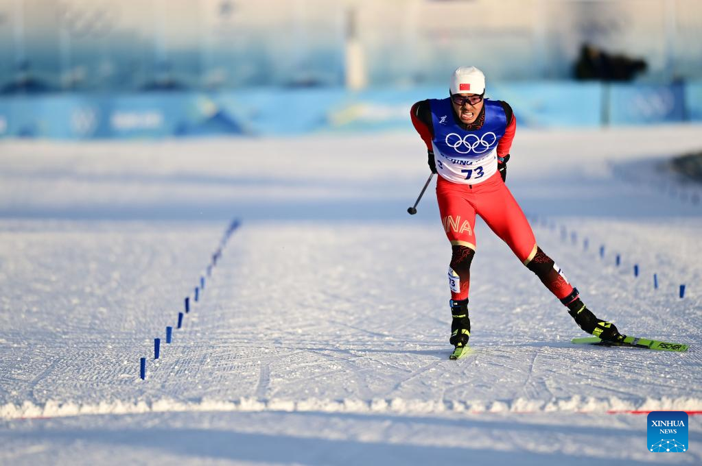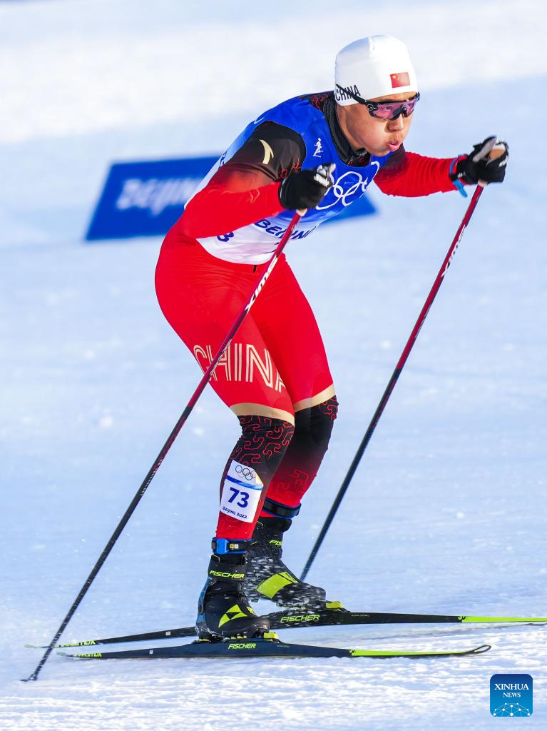 Liu Rongsheng of China competes during the cross-country skiing men's sprint free qulification match of Beijing 2022 Winter Olympics at Zhangjiakou National Cross-country Skiing Centre in Zhangjiakou, north China's Hebei Province, Feb. 8, 2022. (Xinhua/Wang Song)