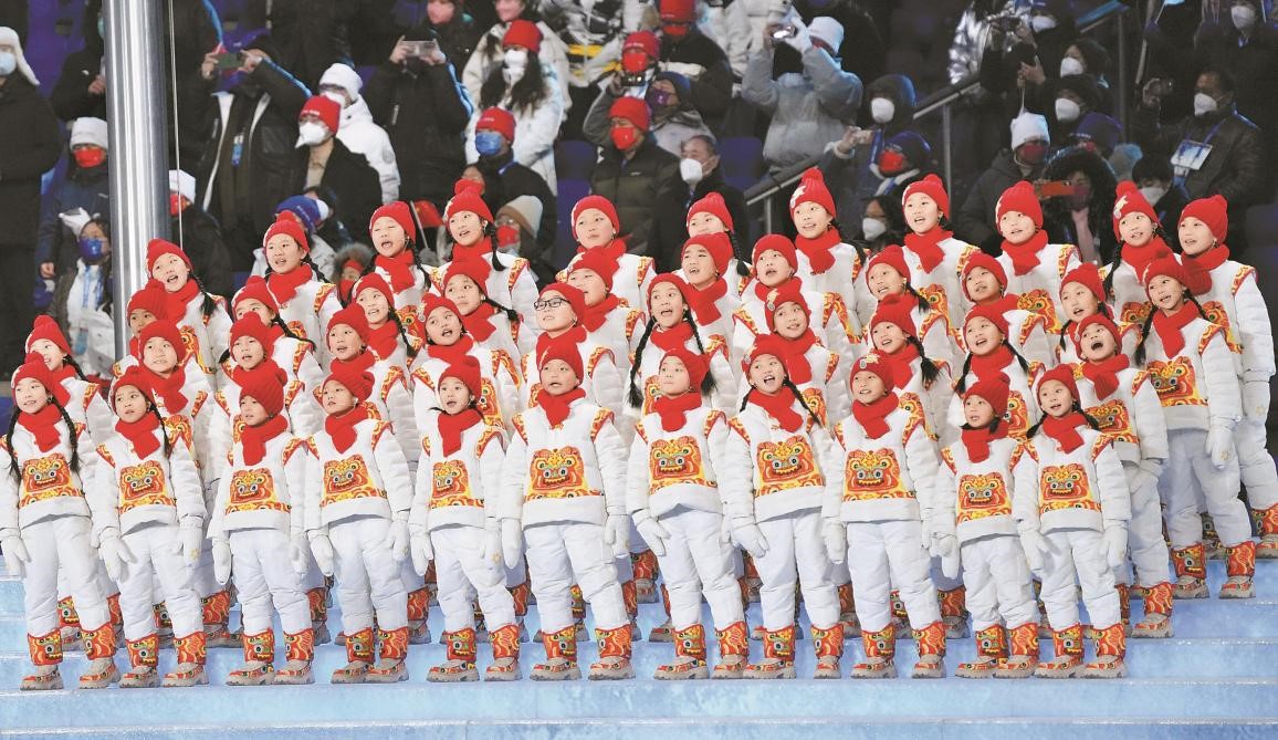 Photo shows children singing at the opening ceremony of the Beijing 2022 Winter Olympics. (Photo/Beijing Daily)