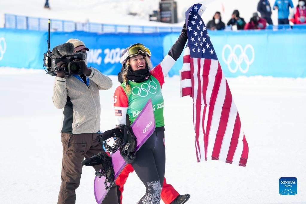 CHONGLI, Zhangjiakou, Feb. 9 (Xinhua) -- Lindsey Jacobellis of the United States won the women's snowboard cross of the Beijing Olympic Winter Games at the Genting Snow Park here on Wednesday.