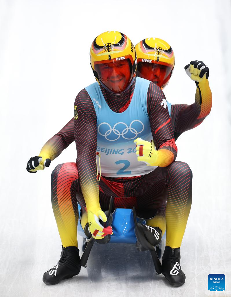 YANQING, Beijing, Feb. 9 (Xinhua) -- German pairs made it a one-two finish in the luge doubles at the Beijing Winter Olympics here on Wednesday.