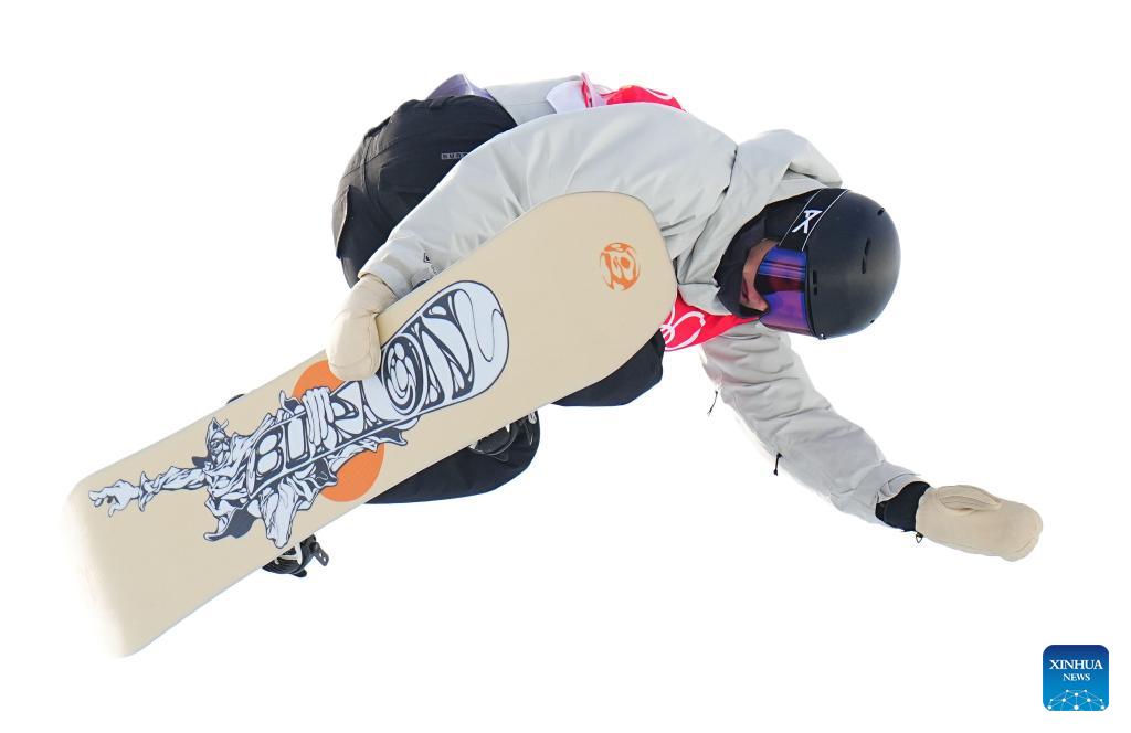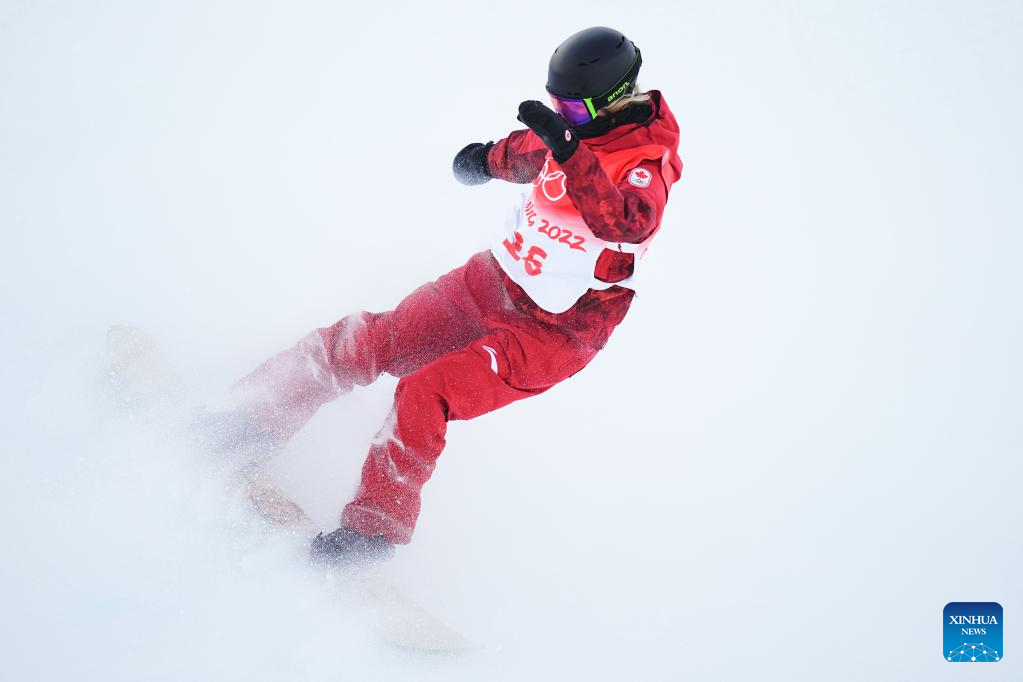 Brooke Dhondt of Canada competes during the women's snowboard halfpipe final at Genting Snow Park in Zhangjiakou, north China's Hebei Province, Feb. 10, 2022. (Xinhua/Xu Chang)
