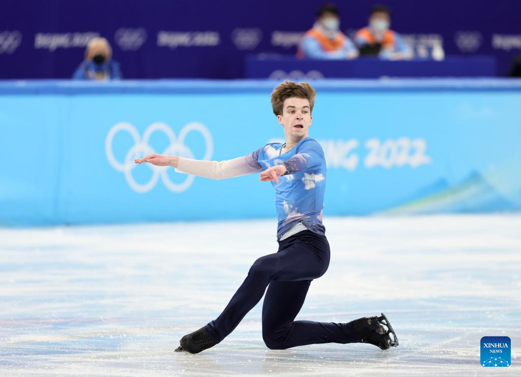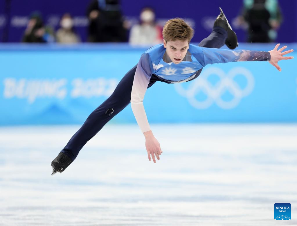 Andrei Mozalev of ROC performs during the figure skating men single skating free skating match of Beijing 2022 Winter Olympics at Capital Indoor Stadium in Beijing, capital of China, Feb. 10, 2022. (Xinhua/Lan Hongguang)