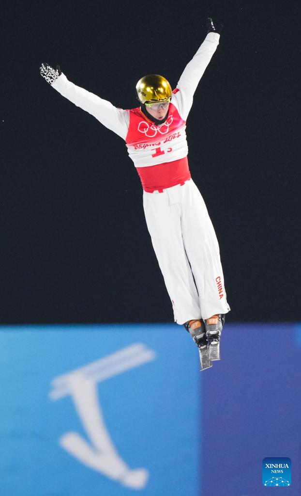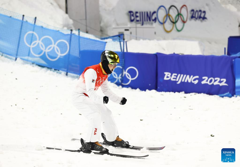 Qi Guangpu of China competes during the freestyle skiing mixed team aerials final at Genting Snow Park in Zhangjiakou, north China's Hebei Province, Feb. 10, 2022. (Xinhua/Fei Maohua)