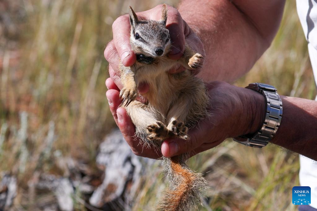 The AWC announced on Wednesday that 60 phascogales have made the 1,400 km journey from Alice Springs Desert Park in the Northern Territory to the Mallee Cliffs National Park in the southwestern region of the state of New South Wales. (AWC/Handout via Xinhua)
