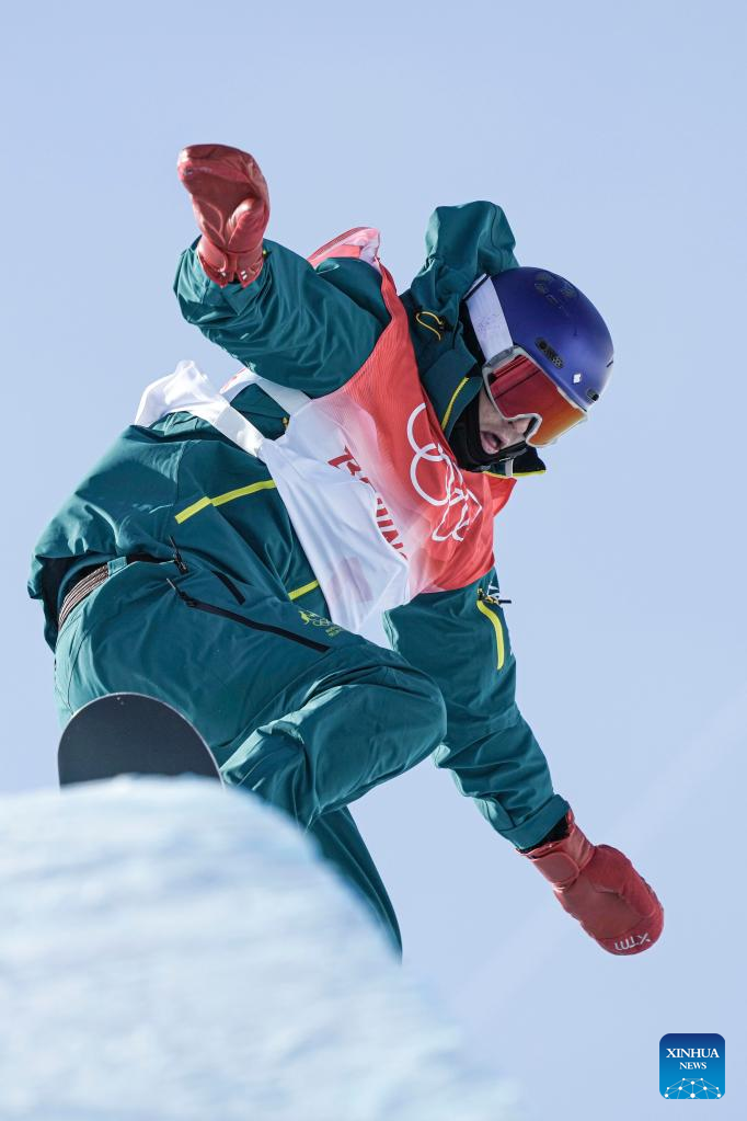 Scotty James of Australia competes during men's snowboard halfpipe final of Beijing 2022 Winter Olympics at Genting Snow Park in Zhangjiakou, north China's Hebei Province, Feb. 11, 2022. (Xinhua/Wu Zhuang)