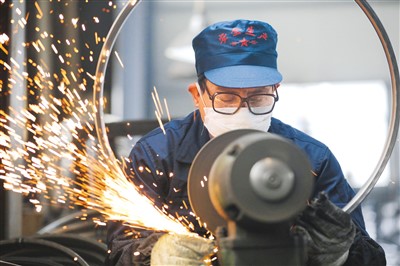 A worker polishes a bicycle rim at a foreign trade enterprise in Hangzhou, east China’s Zhejiang Province. (Xinhua/Hu Jianhuan)