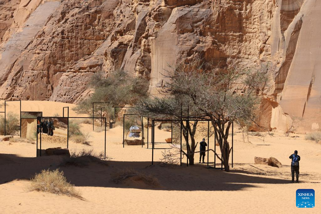 RIYADH, Feb. 11 (Xinhua) --Under the theme of Sarab (mirage in English), the event runs from Feb. 11 to March 30 and aims to explore ideas of mirage and oasis, where participating artists are invited to address dreams, camouflage, fiction, appearance or disappearance, extraction, illusion and myth, and examine the dichotomy between the natural and manmade worlds.
