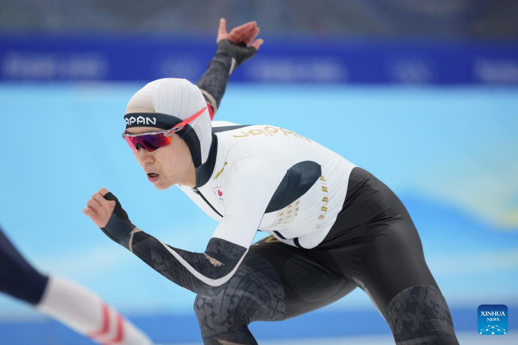 Takagi Miho of Japan competes during speed skating women's 500m at the National Speed Skating Oval in Beijing, capital of China, Feb. 13, 2022. (Xinhua/Wang Jianwei)