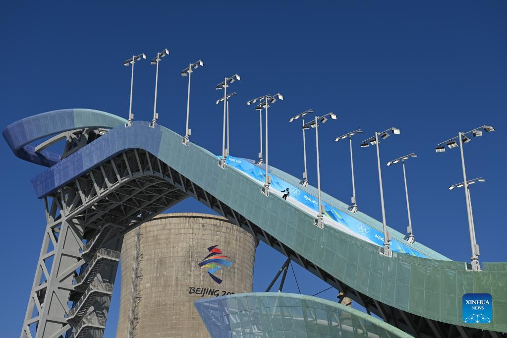 Rong Ge of China competes during women's snowboard big air qualification of Beijing 2022 Winter Olympics at Big Air Shougang in Beijing, capital of China, Feb. 14, 2021. (Xinhua/Huang Zongzhi)
