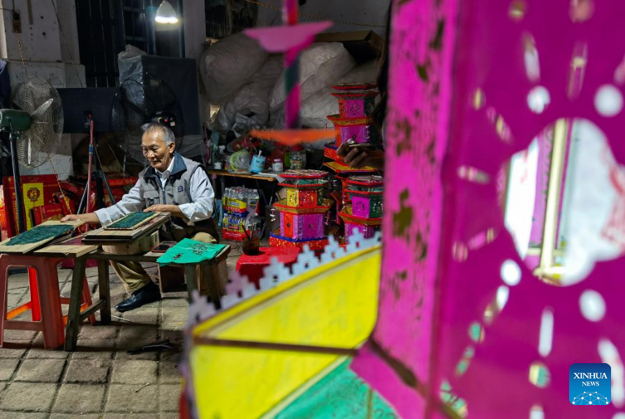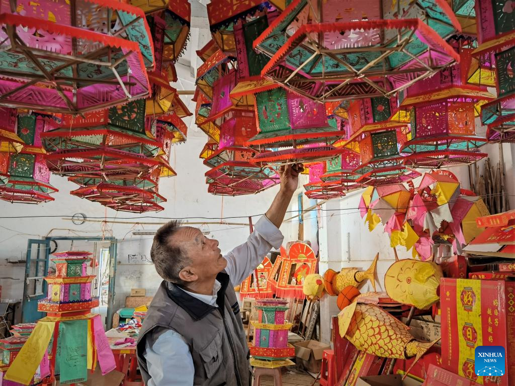 Zou, 73, has been making festive lanterns for over 40 years in Baiyan Village of Wenchang City, south China's Hainan Province.