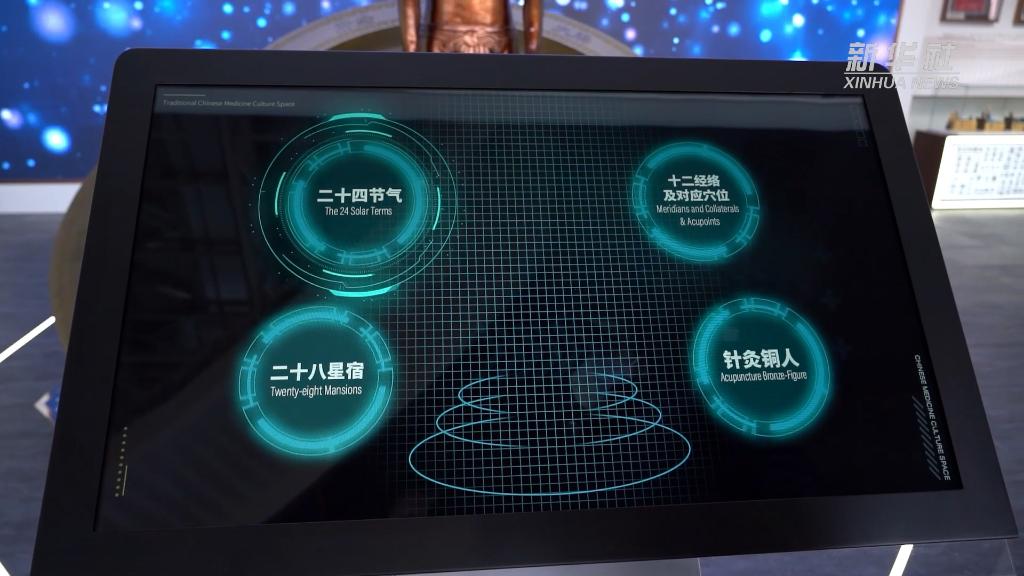 Photo shows TCM elements displayed on a screen. (Photo/Xinhua)