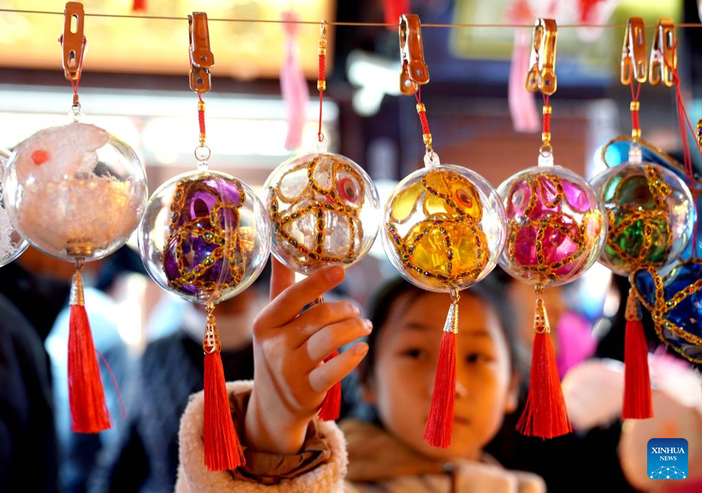 People visit Yuyuan Garden to celebrate the upcoming Lantern Festival in east China's Shanghai, Feb. 14, 2022. The Lantern Festival, the 15th day of the first month of the Chinese lunar calendar, falls on Feb. 15 this year. (Xinhua/Liu Ying)