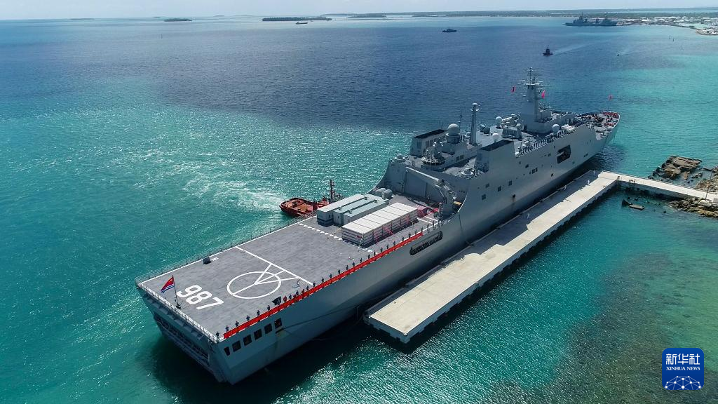 A flotilla of the People's Liberation Army (PLA) Navy carring relief supplies arrives in Nuku' alofa, Tonga, Feb. 15, 2022.(Photo by Xue Chengqing/Xinhua)
