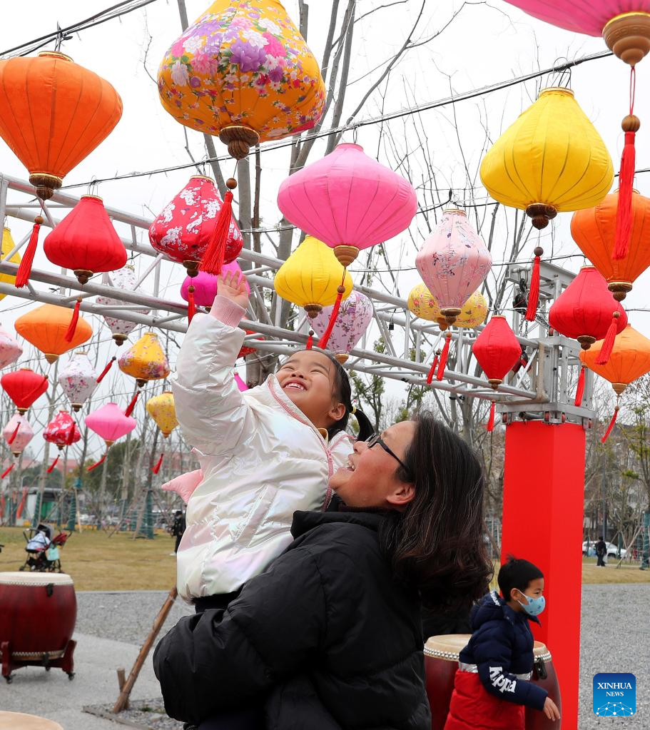 - People enjoy light installations to celebrate upcoming Latern Festival in E China