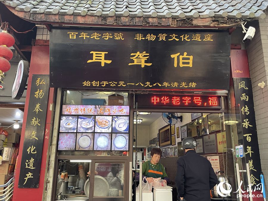 The restaurant attracts customers for its savory glutinous rice balls and unique technique for making the traditional food, which was created by Lin Bingxiang, and was previously listed as a provincial intangible cultural heritage in Fujian.
