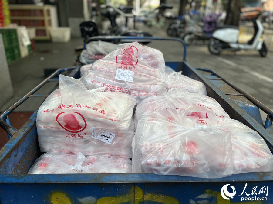 Photo shows glutinous rice balls from Erlongbo, a century-old restaurant, to be delivered before the Lantern Festival in Fuzhou city, southeast China’s Fujian Province. (People’s Daily Online/Qian Jiahe)