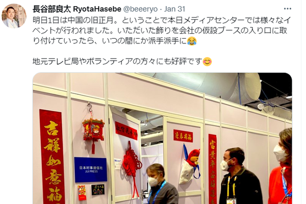 Japanese journalist Ryota Hasebe tweeted in celebration of the Chinese New Year on Jan. 31st. (Photo from a screenshot on Twitter)