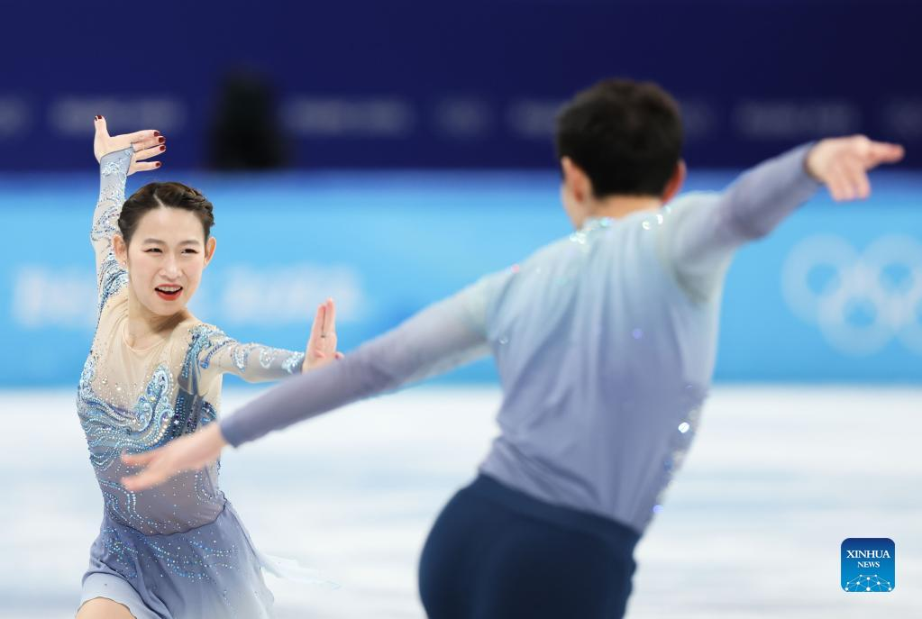 Sui Wenjing (L)/Han Cong of China perform during the figure skating pair skating short program at Capital Indoor Stadium in Beijing, capital of China, Feb. 18, 2022. (Xinhua/Lan Hongguang)