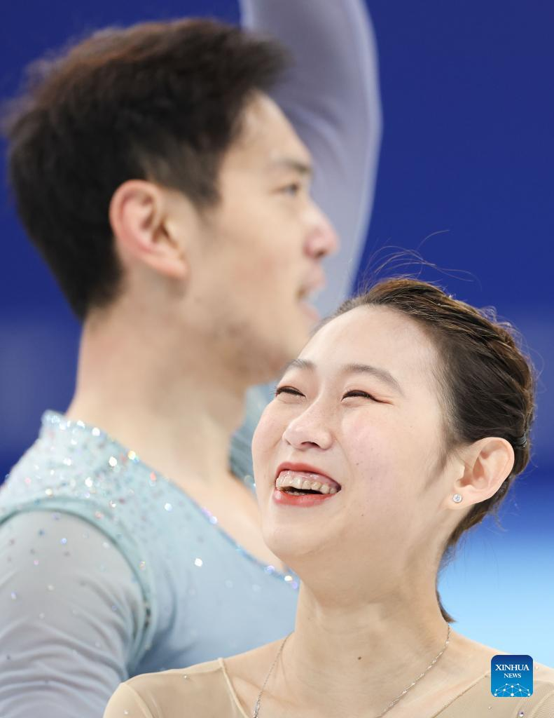 Peng Cheng (front)/Jin Yang of China perform during the figure skating pair skating short program at Capital Indoor Stadium in Beijing, capital of China, Feb. 18, 2022. (Xinhua/Cao Can)