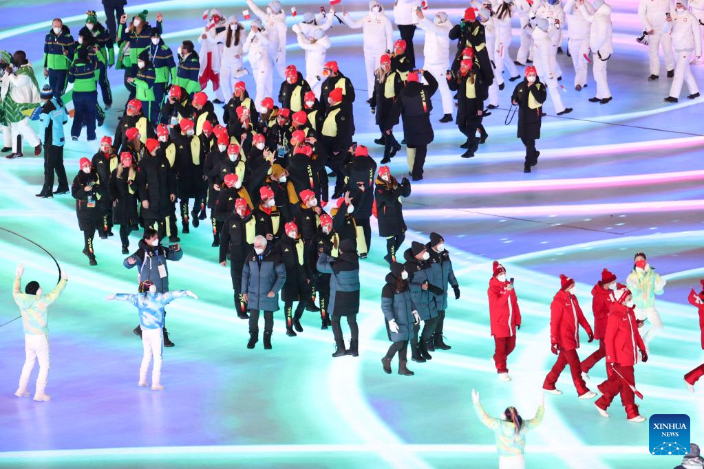 Athletes parade during the closing ceremony of the Beijing 2022 Olympic Winter Games at the National Stadium in Beijing, capital of China, Feb. 20, 2022. (Xinhua/Ding Xu)