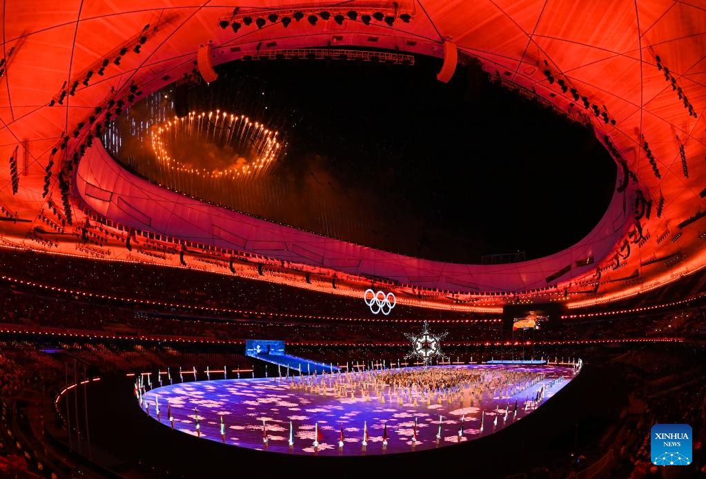 Photo taken on Feb. 20, 2022 shows the closing ceremony of the Beijing 2022 Olympic Winter Games at the National Stadium in Beijing, capital of China. (Xinhua/Xu Zijian)