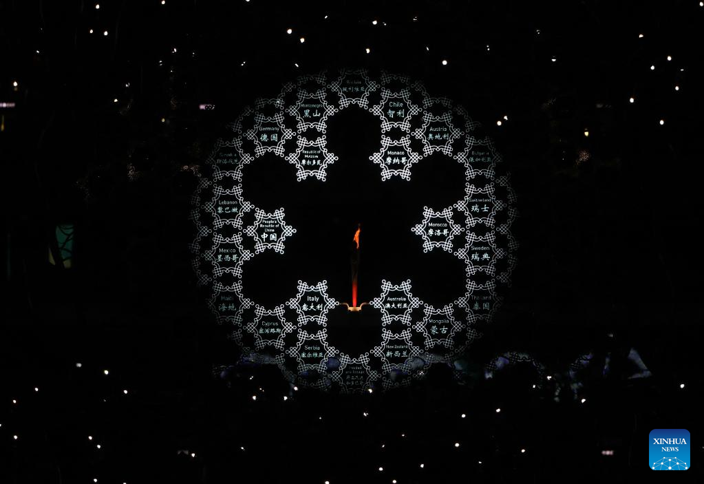 Photo taken on Feb. 20, 2022 shows the cauldron during the closing ceremony of the Beijing 2022 Olympic Winter Games at the National Stadium in Beijing, capital of China. (Xinhua/Cao Can)