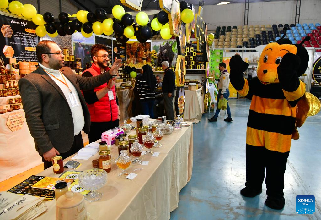 People visit the Honey Festival in Damascus, capital of Syria, Feb. 20, 2022. (Photo by Ammar Safarjalani/Xinhua)